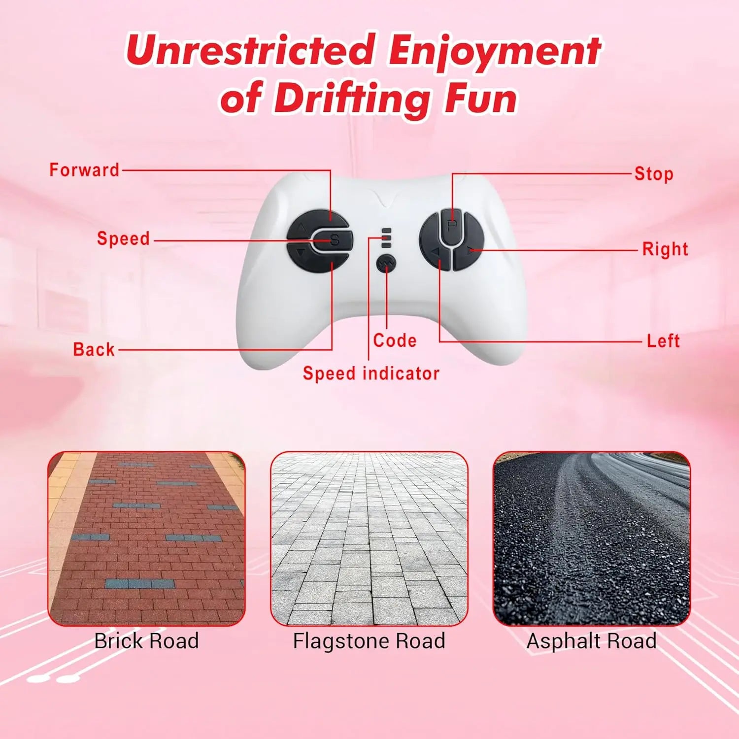 Powered by dual 25W motors and a reinforced steel frame for smooth, responsive acceleration. ASTM/CPSIA certified with a 360° impact-resistant PP body. Low-center gravity design reduces tipping risk, and a soft-start system eliminates sudden jerks for safer starts and stops.