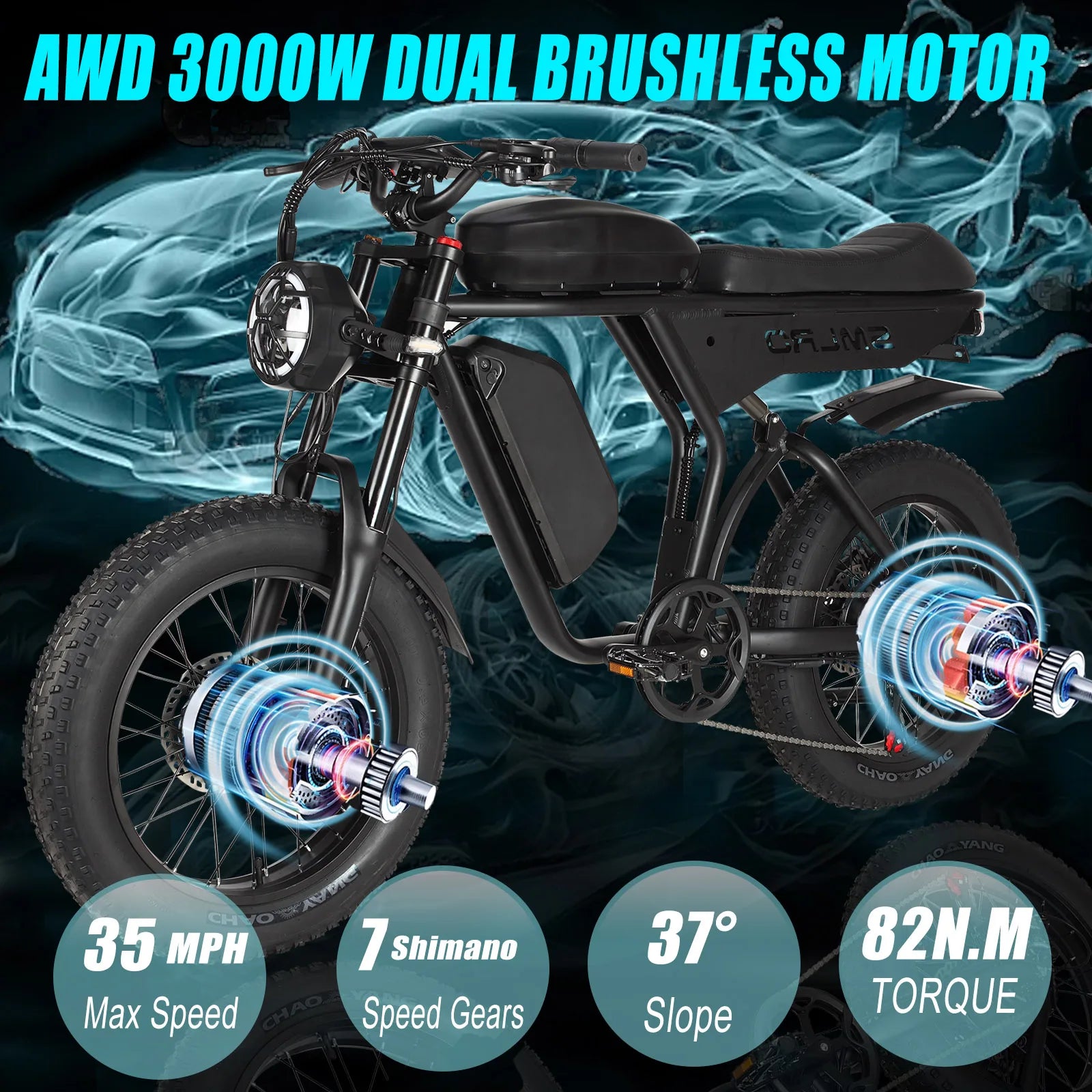 3000W Dual Motor Electric Bike with Shimano 7 Speed and Brakes