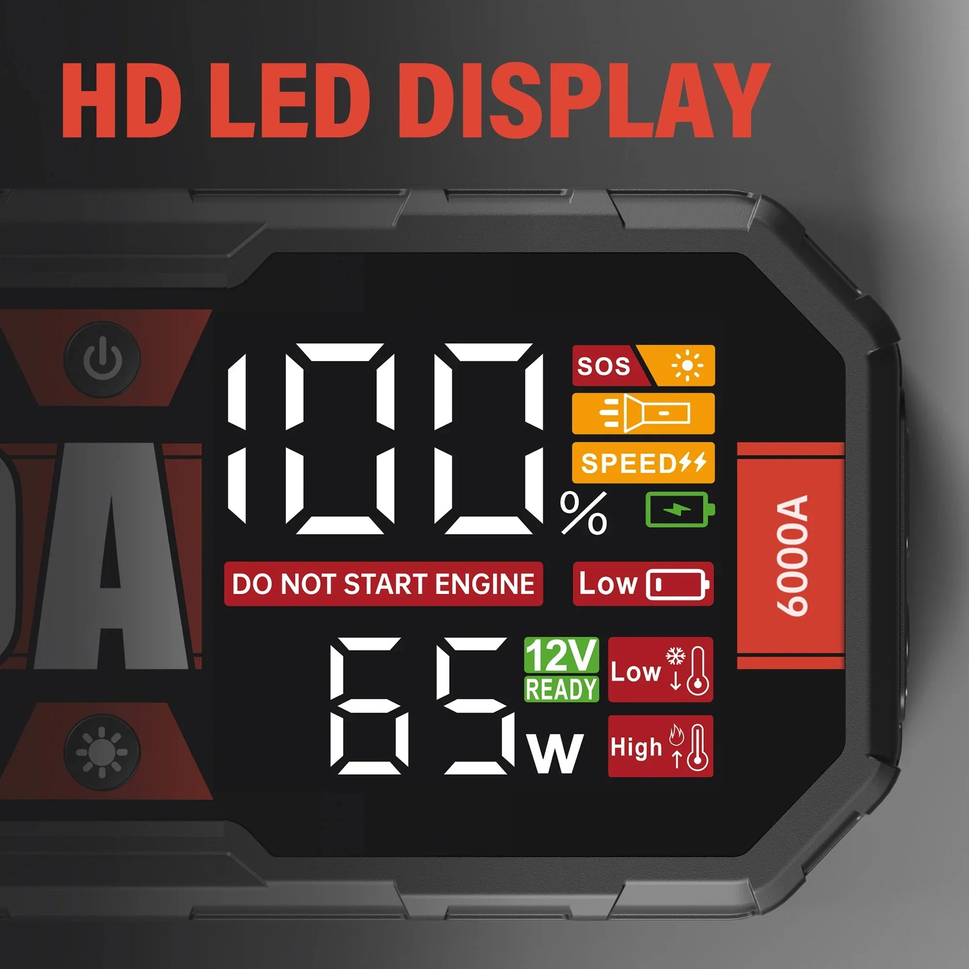 Car Jump Starter 6000A Portable Power Bank PD65W 12V
