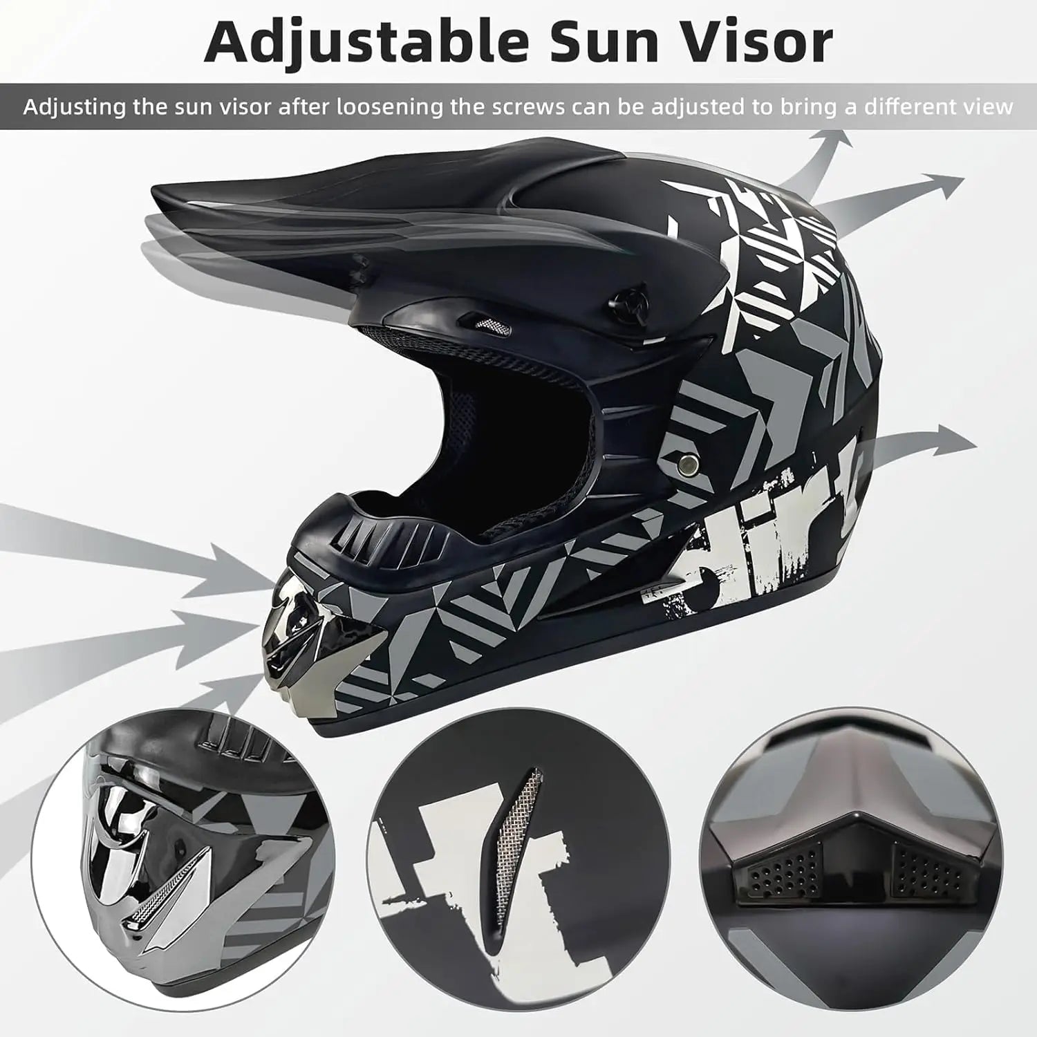 DOT Full Face Motocross Helmet with Gloves Goggles and Mask Set