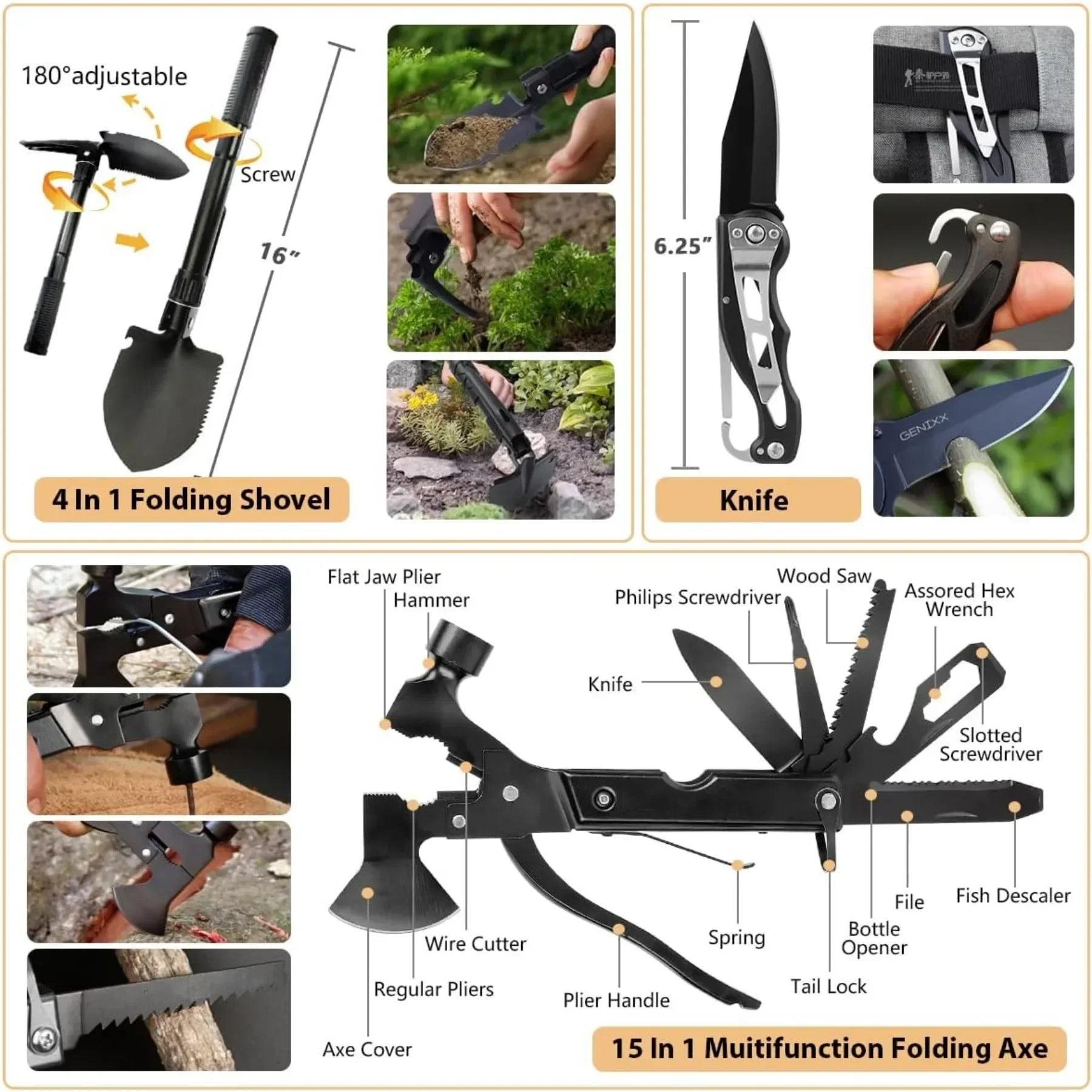 250 in 1 Survival Kit with MOLLE System Emergency Gear and Tents is built to keep you prepared for any scenario—from outdoor adventures to unexpected disasters. Designed by three survival experts, this all-in-one kit bundles 250 multipurpose tools into one portable system, giving you quick access to the gear you need when time matters.