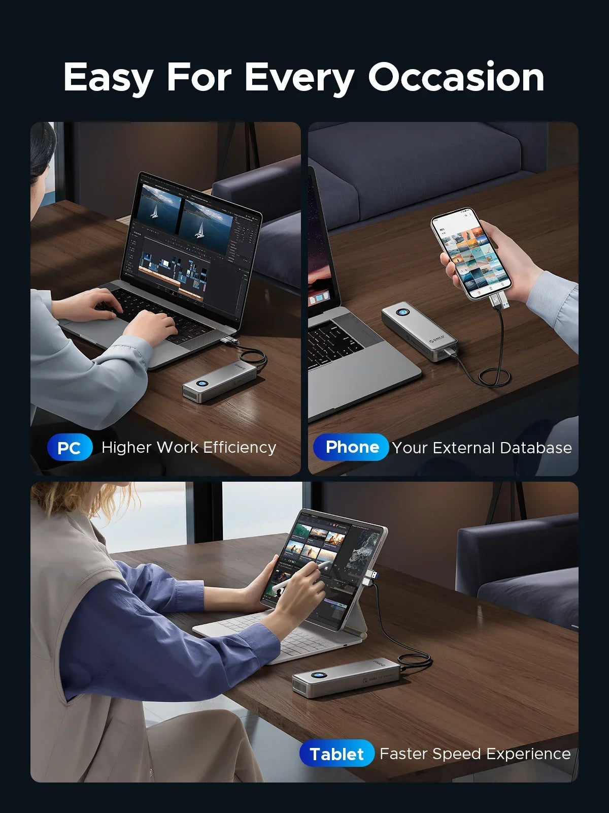 - Up to 8TB capacity: Accommodates high-capacity M.2 NVMe drives so you can carry massive libraries, project files, and backups on a single compact device.