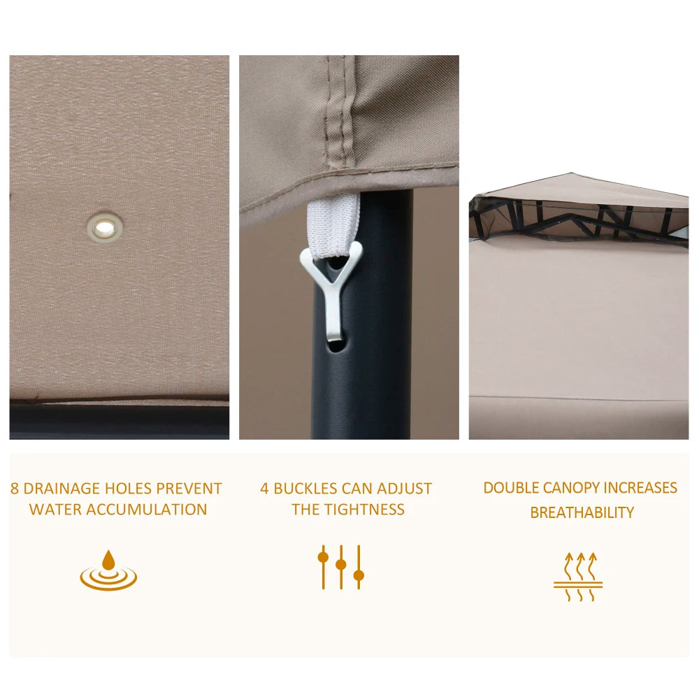 Transform your outdoor gatherings with the Spacious Outdoor Patio Gazebo With 2-Tier Roof And Netting. This premium garden sun shelter is designed to accommodate 3-4 people comfortably, ensuring you can enjoy your time outside without feeling cramped. The elegant two-tier roof adds a touch of sophistication while enhancing airflow, making it perfect for sunny afternoons or evening get-togethers.