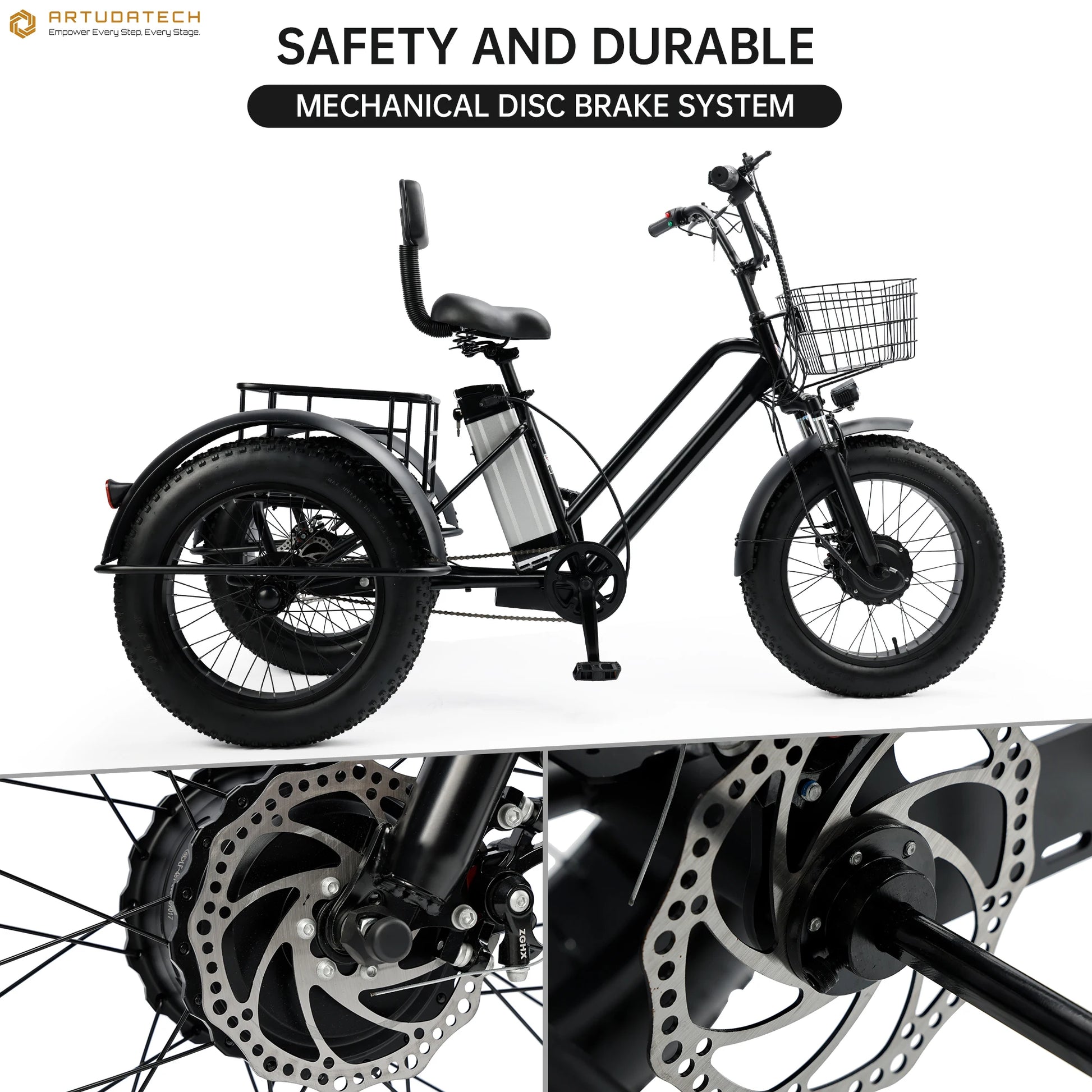This electric snow tricycle is not just about power; it's about comfort too. Featuring a double spring shock absorption design and three-dimensional sponge filling, the saddle ensures that you remain comfortable even after extended rides. No more fatigue or discomfort—just pure enjoyment.