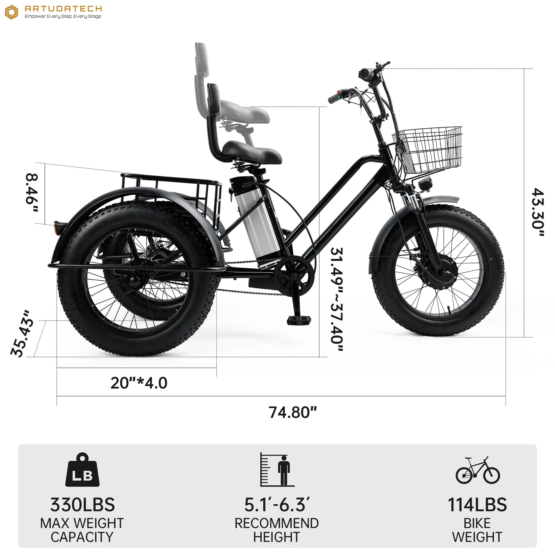 - Fat Tires: Designed to provide excellent traction and stability on snowy and slippery surfaces.