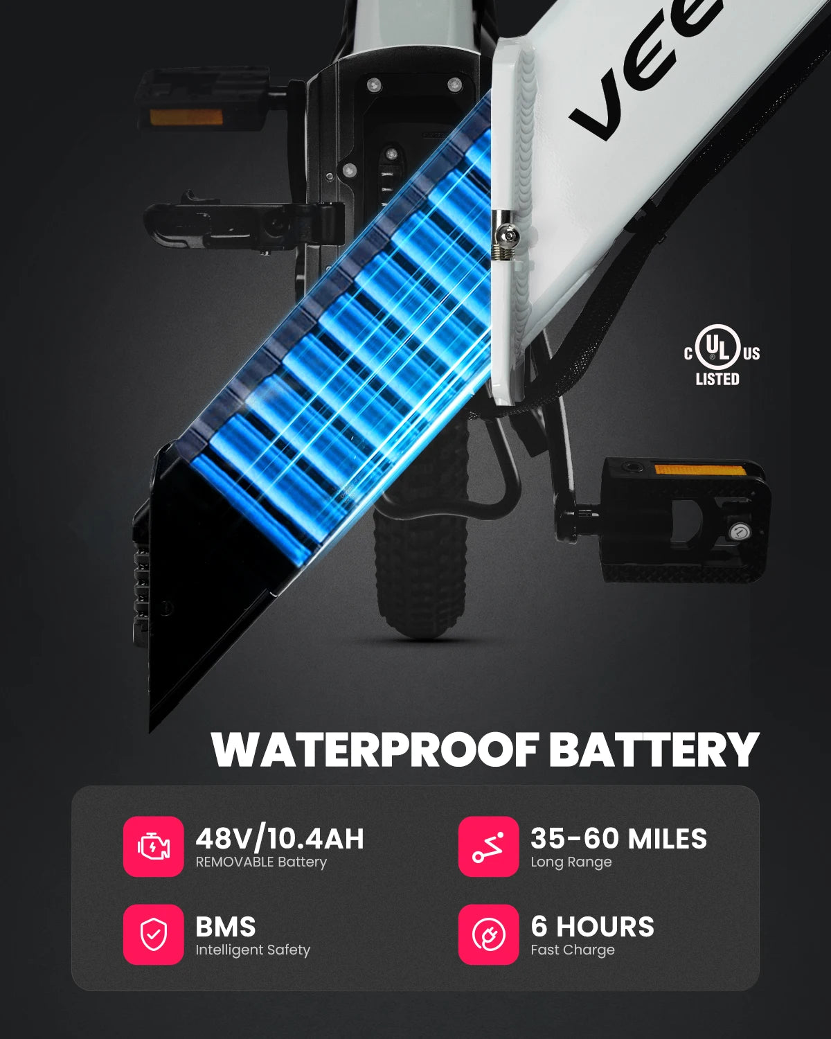 - Removable, long-range battery: IP65-rated 48V 10.4Ah (499.2Wh) battery, easily removable for charging and flexible daily use.
